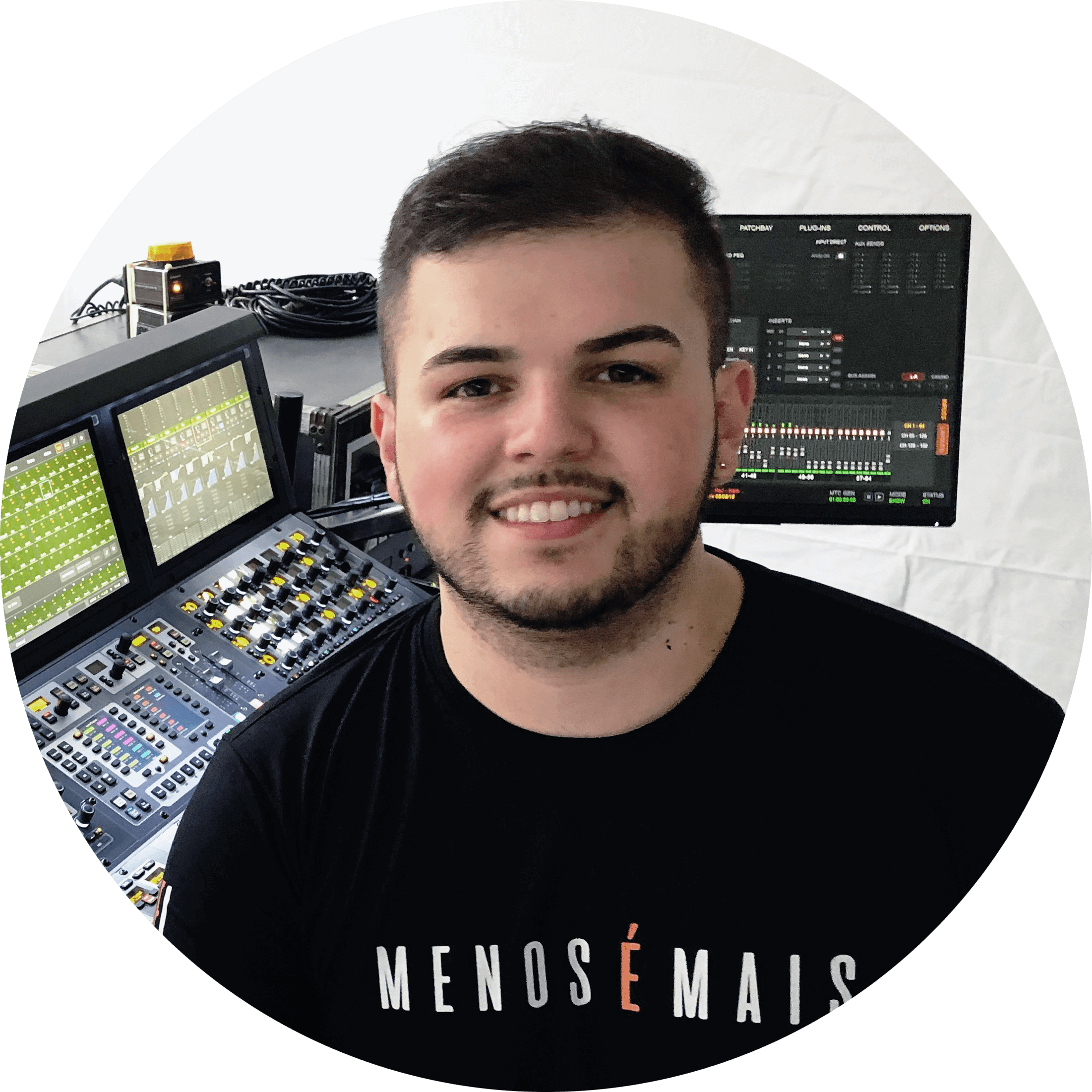 [text_block style=”style_1.png” align=”left” font_size=”16″ font_color=”%23787e87″ width=”520″]Kaio Mix é um profissional que trabalha no mercado do áudio há 12 anos. Atualmente, ele é operador de áudio do cantor sertanejo Felipe Araújo. Apesar de ter apenas 27 anos, Kaio possui muita experiência na área e já trabalhou ao lado de artistas estourados no Brasil inteiro, como: Wesley Safadão, Henrique e Juliano, Cristiano Araújo, Samyra Show e Frank Aguiar.